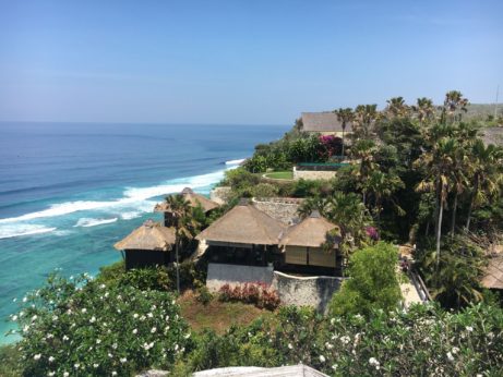 Ubytování v hotelu přímo v centru Ubudu a pak v bungalovech přímo na útesu s výhledem na Indický oceán.